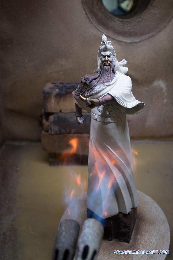 Un artesano elabora un caballo de cobre en el taller de una fábrica, en la ciudad de Jiande, provincia de Zhejiang, en el este de China, el 2 de enero de 2019. La empresa de producción de artículos sanitarios tradicionales, Tong Shifu, que significa maestro del cobre, se ha convertido en una empresa que dise?a y fabrica obras de arte de cobre en colaboración con un museo, una firma de dibujos animados y un estudio de artista. Con la producción anual alcanzando los 500 millones de yuanes (aproximadamente 72.9 millones de dólares estadounidenses), la campa?ía ha tenido éxito en la tranformación industrial. (Xinhua/Weng Xinyang)
