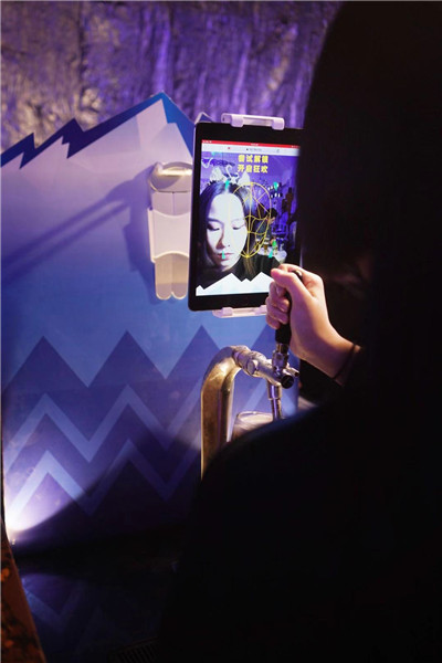Tian Jimo recibe su dispensador de cerveza personalizado, que solamente puede activar mediante reconocimiento facial. [Foto: proporcionada a chinadaily.com.cn]