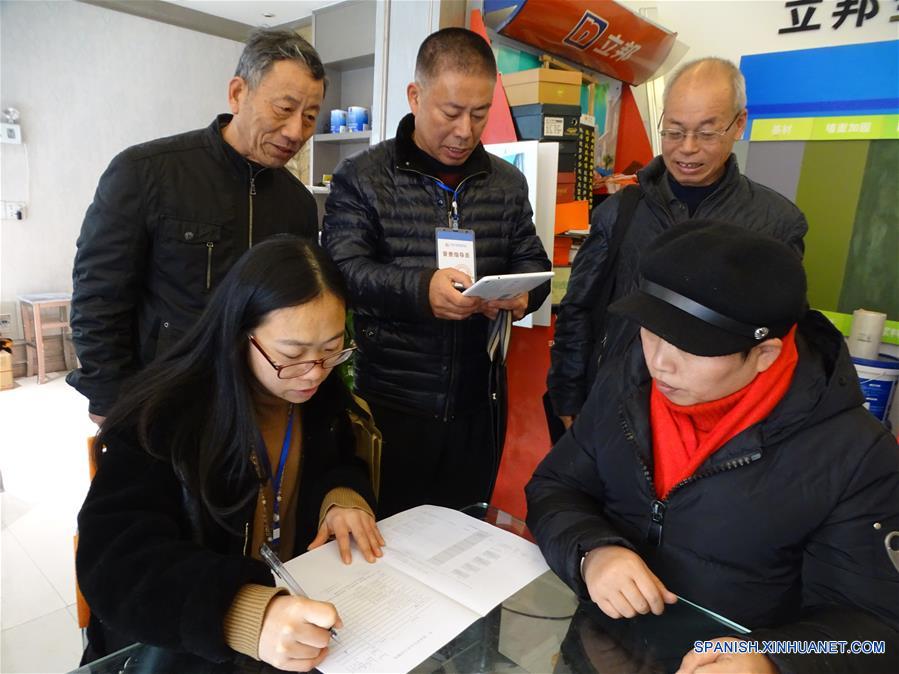 Imagen del 1 de enero de 2019 de trabajadores del censo registrando información de una persona de negocios, en la localidad de Ruoheng de la ciudad de Wenling, provincia de Zhejiang, en el este de China. El cuarto censo económico nacional de China entró el martes en su etapa de registro. El censo, realizado cada cinco a?os, abarcará a todas las empresas involucradas en las industrias secundaria y terciaria, para ofrecer un amplio panorama económico. China ha llevado a cabo tres censos económicos nacionales previamente: en 2004, 2008 y 2013. (Xinhua/Jiang Lianqiu)