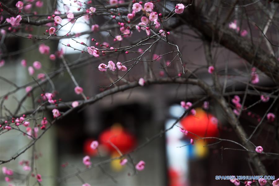 Vista de las decoraciones de festival para recibir el A?o Nuevo Lunar en la ciudad antigua de Zhuoshui, en el distrito de Qianjiang, en Chongqing, en el suroeste de China, el 6 de enero de 2018. (Xinhua/Yang Min)