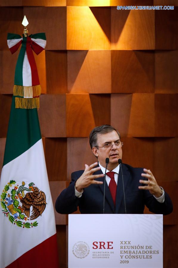 Marcelo Ebrard Casaubón, secretario de Relaciones Exteriores de México, pronuncia un discurso durante la ceremonia de inauguración de la XXX Reunión Anual de Embajadores y Consules en la Ciudad de México, capital de México, el 7 de enero de 2019. De acuerdo con información de la prensa local, Marcelo Ebrard Casaubón pidió a la diplomacia mexicana a redise?ar la política exterior, además de no intervenir en la diplomacia entre países y el respeto entre las naciones. (Xinhua/Francisco Ca?edo)