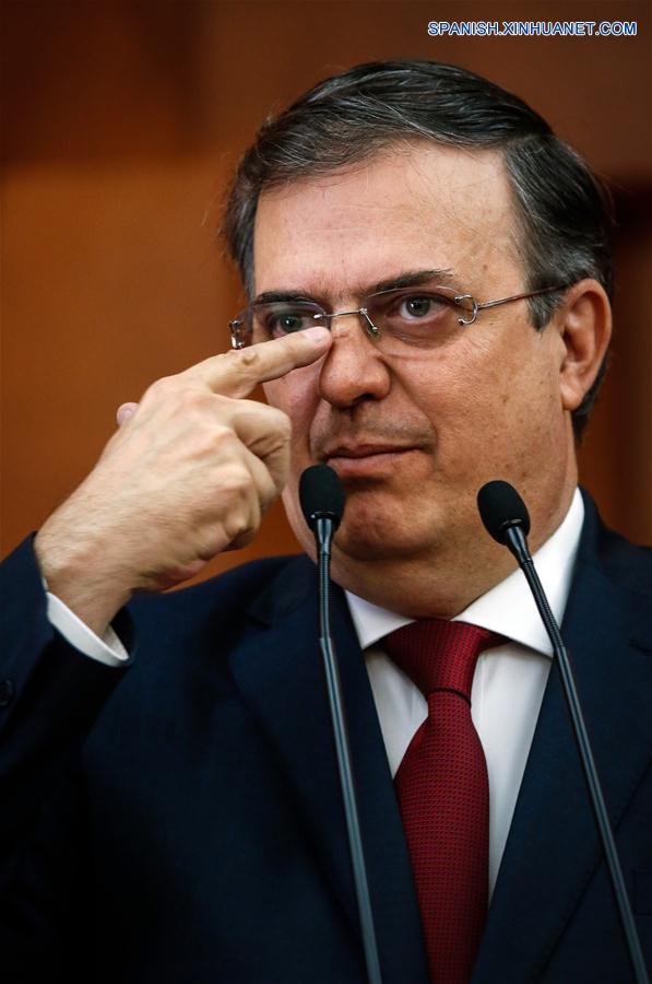Marcelo Ebrard Casaubón, secretario de Relaciones Exteriores de México, reacciona durante la ceremonia de inauguración de la XXX Reunión Anual de Embajadores y Consules en la Ciudad de México, capital de México, el 7 de enero de 2019. De acuerdo con información de la prensa local, Marcelo Ebrard Casaubón pidió a la diplomacia mexicana redise?ar la política exterior, además de no intervenir en la diplomacia entre países y el respeto entre las naciones. (Xinhua/Francisco Ca?edo)
