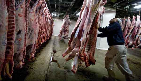 Sala de matadero con piezas Halal, para el consumo musulman, (Llibert Teixidó)