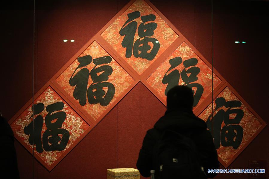 Objetos son exhibidos en el Museo del Palacio, también conocido como la Ciudad Prohibida, en Beijing, capital de China, el 8 de enero de 2019. El Museo del Palacio presenta la exposición "Celebrado el Festival de la Primavera en la Ciudad Prohibida" para saludar la más importante de todas las fiestas tradicionales. La exposición abrió el martes al público. Cientos de objetos son exhibidos en el museo. (Xinhua/Zhang Chuanqi)