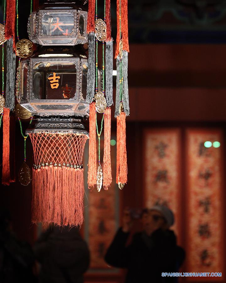 Linternas decorativas son captadas en el Museo del Palacio, también conocido como la Ciudad Prohibida, en Beijing, capital de China, el 8 de enero de 2019. El Museo del Palacio presenta la exposición "Celebrado el Festival de la Primavera en la Ciudad Prohibida" para saludar la más importante de todas las fiestas tradicionales. La exposición abrió el martes al público. Cientos de objetos son exhibidos en el museo. (Xinhua/Zhang Chuanqi)