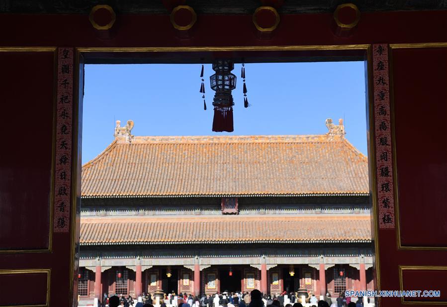 Personas visitan el Museo del Palacio, también conocido como la Ciudad Prohibida, en Beijing, capital de China, el 8 de enero de 2019. El Museo del Palacio presenta la exposición "Celebrado el Festival de la Primavera en la Ciudad Prohibida" para saludar la más importante de todas las fiestas tradicionales. La exposición abrió el martes al público. Cientos de objetos son exhibidos en el museo. (Xinhua/Zhang Chuanqi)
