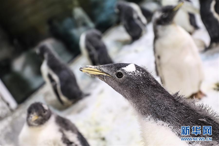 Una cría de pingüino de ceja blanca fotografiada el 9 de enero en el parque Ocean World de Dalian, que cuenta con una "guardería" especial que ayuda a las crías de pingüinos a aprender y crecer.