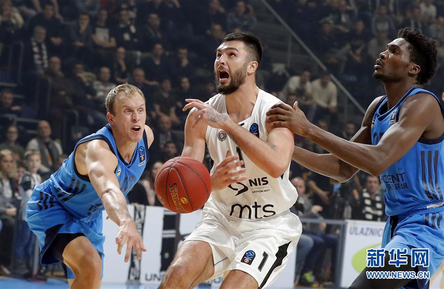 BELGRADO, enero 10, 2019 (Xinhua) -- Nikola Jankovic (c), de Partizan, disputa el balón con Luke Sikma (i) y Landry Nnoko (d) de Alba, durante la ronda 2 de la Eurocopa de baloncesto, en Begrado, Serbia, el 9 de enero de 2019. (Xinhua/Predrag Milosavljevic)