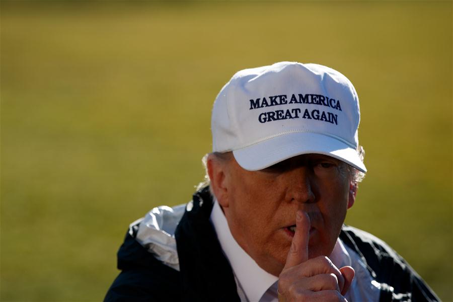 WASHINGTON D.C., enero 10, 2019 (Xinhua) -- El presidente estadounidense, Donald Trump, conversa con representantes de los medios de comunicación previo a su salida de la Casa Blanca, en Washington D.C., Estados Unidos, el 10 de enero de 2019. El presidente de Estados Unidos, Donald Trump, dijo el jueves que es "casi seguro" que declare una emergencia nacional en la frontera con México, una controversial opción que el presidente ha estado contemplando públicamente desde la semana pasada. (Xinhua/Ting Shen)