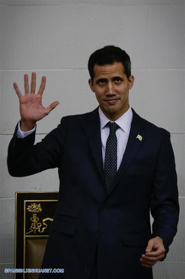 CARACAS, enero 13, 2019 (Xinhua) -- Imagen del 5 de enero de 2019, del diputado Juan Guaidó, dirigente del partido político Voluntad Popular, reaccionando durante su juramentación como presidente de la Asamblea Nacional venezolana, en Caracas, Venezuela, el 5 de enero de 2019. Los efectivos que realizaron un "procedimiento irregular" contra el presidente de la opositora Asamblea Nacional (AN) en "desacato", Juan Guaidó, fueron destituidos el domingo y se espera que se apliquen sanciones disciplinarias. Según medios locales, Guaidó, liberado cerca de media hora después de ser interceptado, fue detenido por agentes del Servicio Bolivariano de Inteligencia Nacional (SEBIN) de Venezuela en la autopista Caracas-La Guaira cuando se desplazaba hacia Carabelleda, en la costa cercana a Caracas, para asistir a un cabildo. Guaidó fue juramentado el 5 de enero de 2018 como presidente de la AN y se pronunció entonces contra la toma de posesión del presidente Nicolás Maduro para su segundo período (2019-2025), efectuada el 10 de enero. (Xinhua/Boris Vergara)