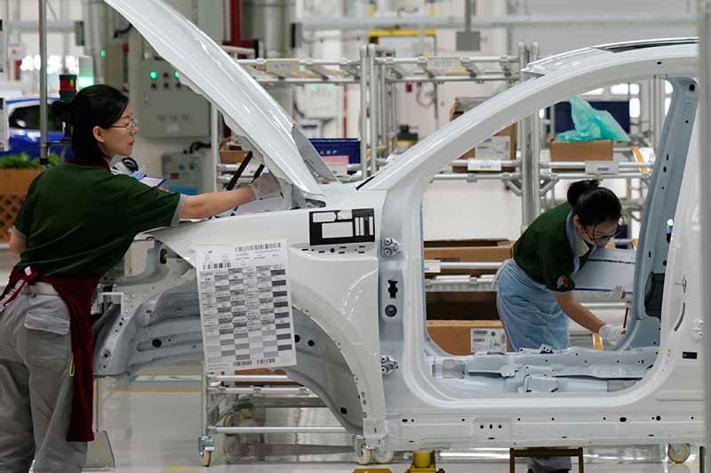 Los empleados trabajan en la línea de producción de la planta Chevy Jaguar Land Rover en Changshu, provincia de Jiangsu. [Foto: Agencias]