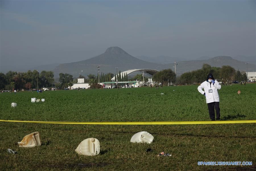 Un miembrio del personal del Servicio Médico Forene trabaja en el sitio de una explosión, en el municipio de Tlahuelilpan, estado de Hidalgo, México, el 19 de enero de 2019. La explosión e incendio en una toma clandestina en un ducto de hidrocarburos la víspera en el central estado mexicano de Hidalgo acumula un saldo de 66 personas fallecidas y 76 heridas, informaron el sábado las autoridades. El gobernador de Hidalgo, Omar Fayad, dijo que el saldo todavía era preliminar porque muchas personas se encontraban debatiéndose entre "la vida y la muerte", a consecuencia del percance ocurrido la tarde-noche del viernes en el municipio de Tlahuelilpan. (Xinhua/Carolina Endara)