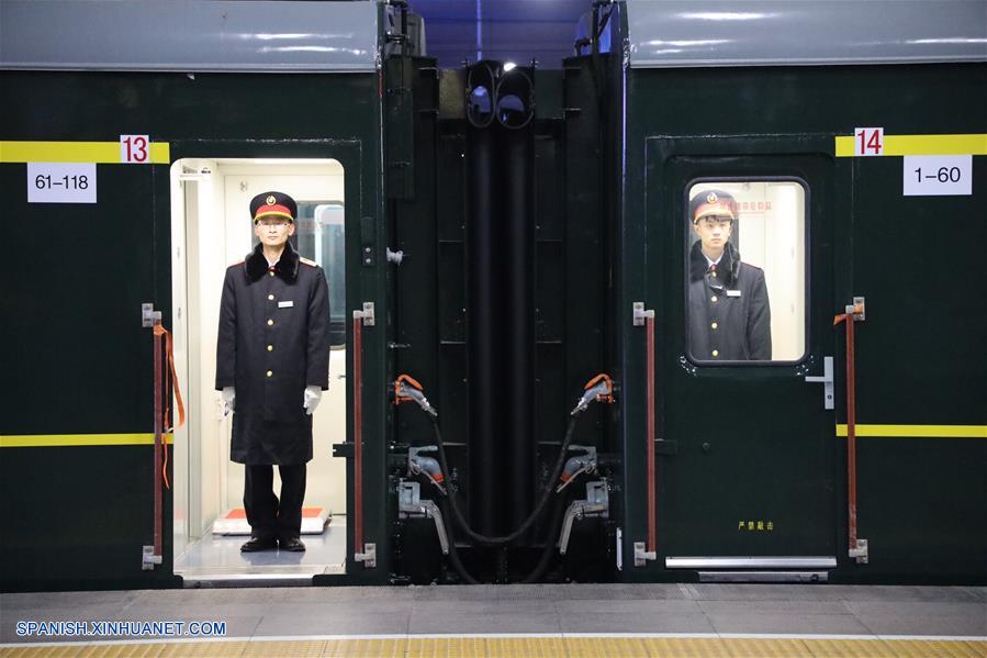 BEIJING, enero 2O, 2019 (Xinhua) -- Empleados del tren K4051 hacia la ciudad de Nantong, provincia de Jiangsu, en el este de China, esperan partir de la Estación de Ferrocarril de Beijing, durante el primer día del frenesí de viajes por el Festival de Primavera, en Beijing, capital de China, el 20 de enero de 2019. Millones de chinos regresan a sus pueblos natales cada a?o para celebrar el A?o Nuevo Lunar, o Festival de Primavera, formando así la temporada alta del Festival de Primavera. El Festival de Primavera, o A?o del Cerdo en el calendario lunar chino, empezará el 5 de febrero de 2019. Los 40 días del frenesí de viajes por el Festival de Primavera empieza el 21 de enero, en el que se espera que se realicen 3 billones de viajes. (Xinhua/Xing Guangli)
