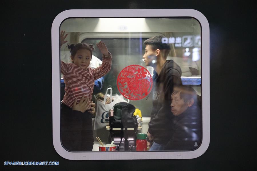 Pasajeros del tren K4051 hacia la ciudad de Nantong, provincia de Jiangsu, en el este de China, esperan partir de la Estación de Ferrocarril de Beijing, durante el primer día del frenesí de viajes por el Festival de Primavera, en Beijing, capital de China, el 20 de enero de 2019. Millones de chinos regresan a sus pueblos natales cada a?o para celebrar el A?o Nuevo Lunar, o Festival de Primavera, formando así la temporada alta del Festival de Primavera. El Festival de Primavera, o A?o del Cerdo en el calendario lunar chino, empezará el 5 de febrero de 2019. Los 40 días del frenesí de viajes por el Festival de Primavera empieza el 21 de enero, en el que se espera que se realicen 3 billones de viajes. (Xinhua/Xing Guangli)