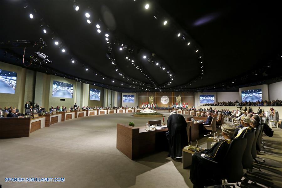 BEIRUT, enero 20, 2019 (Xinhua) -- Personas participan en la cuarta Cumbre Arabe de Desarrollo Económico y Social, en Beirut, Líbano, el 20 de enero de 2019. De acuerdo con información de la prensa local, la cuarta Cumbre Arabe de Desarrollo Económico y Social inició el domingo en Beirut. (Xinhua/Bilal Jawich)