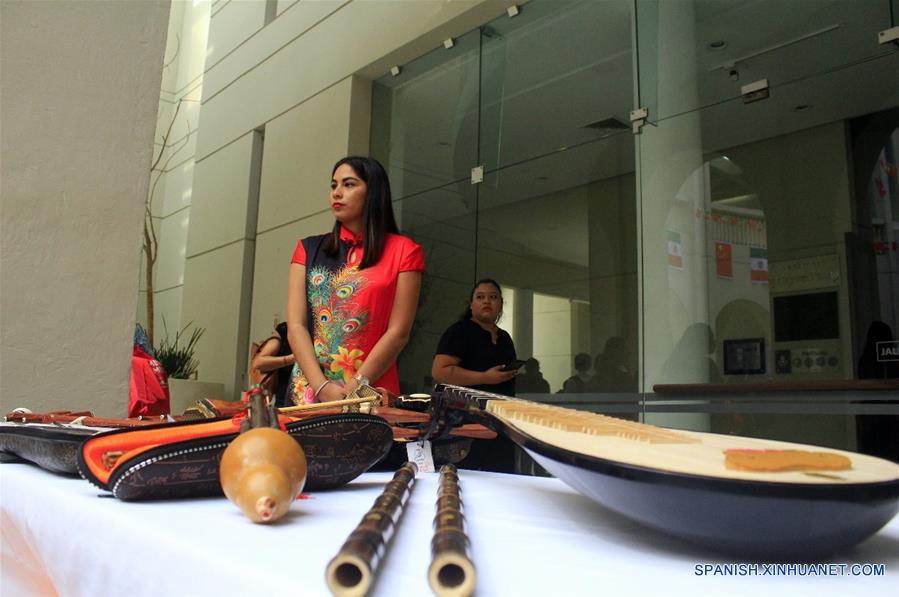 Imagen del 18 de enero de 2019 de una persona exhibiendo instrumentos chinos después de la ceremonia de inauguración de la "Semana China en Mérida", en Mérida, capital del estado de Yucatán, en México. Con la representación de las tradicionales danzas del Dragón y el León el viernes arrancó la "Semana China en Mérida" en la capital del estado mexicano de Yucatán, donde se localizan los vestigios de la milenaria civilización maya. (Xinhua/Luis Zetina)