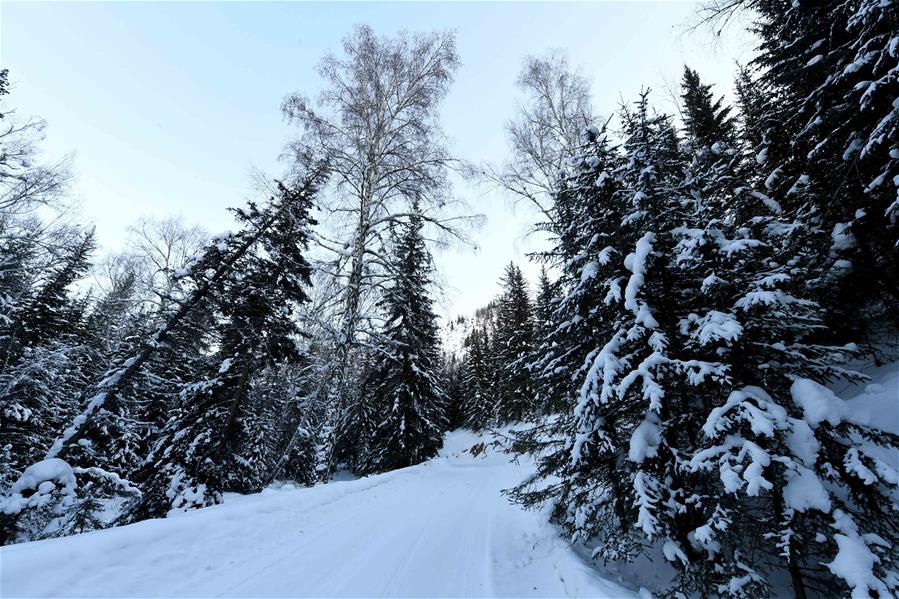 ALTAY, enero 21, 2019 (Xinhua) -- Imagen del 19 de enero de 2019 de una vista del paisaje invernal en el punto escénico Keketuohai en Altay, en la Región Autónoma Uygur de Xinjiang, en el noroeste de China. (Xinhua/Sadat)