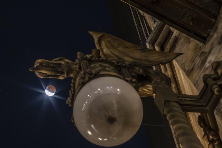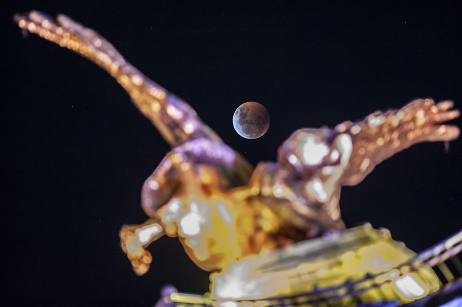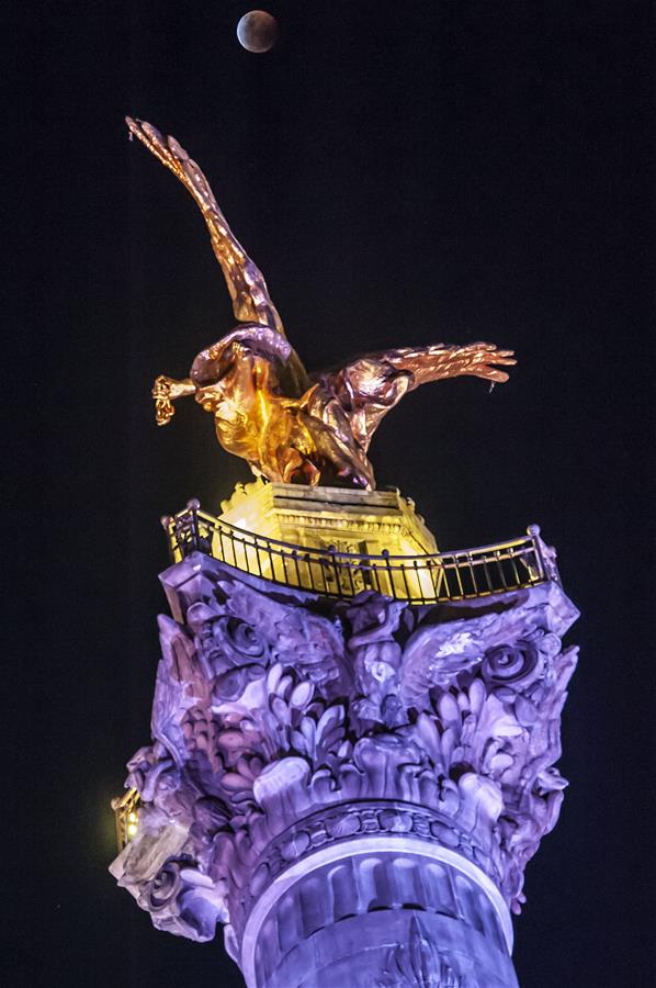 CIUDAD DE MEXICO, enero 21, 2019 (Xinhua) -- Imagen del 20 de enero de 2019 del eclipse total de Luna en el cielo de la Ciudad de México, capital de México. (Xinhua/Xin Yuewei)