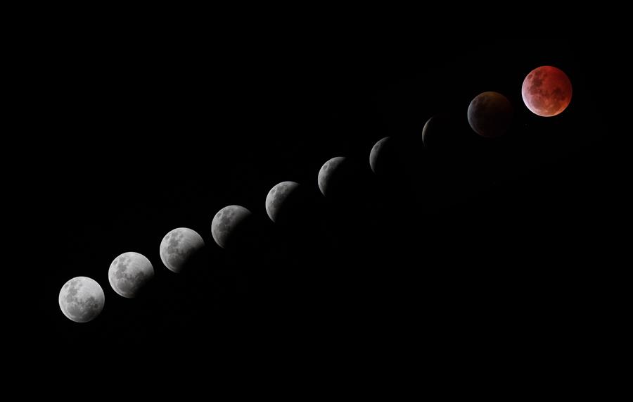CIUDAD DE MEXICO, enero 21, 2019 (Xinhua) -- Imagen combinada del 20 de enero de 2019 de las fases de la luna durante el eclipse total de Luna también llamado "Luna de Sangre", en la Ciudad de México, capital de México. (Xinhua/Francisco Ca?edo)
