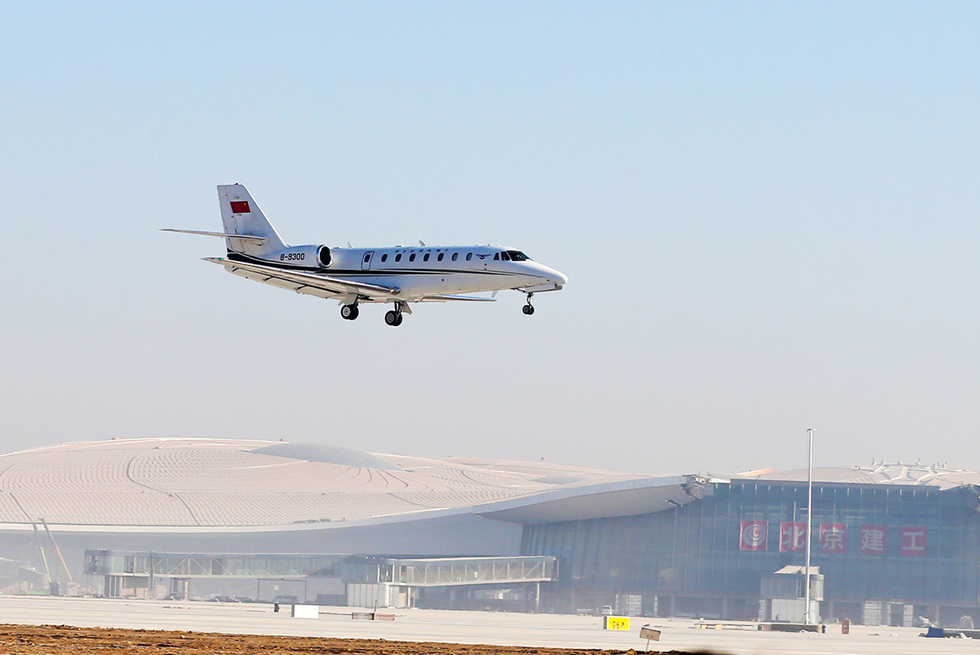 El primer vuelo de prueba aterriza en el Aeropuerto Internacional Daxing de Beijing, el 22 de enero de 2019. [Foto por Wang Zhuangfei / chinadaily.com.cn]