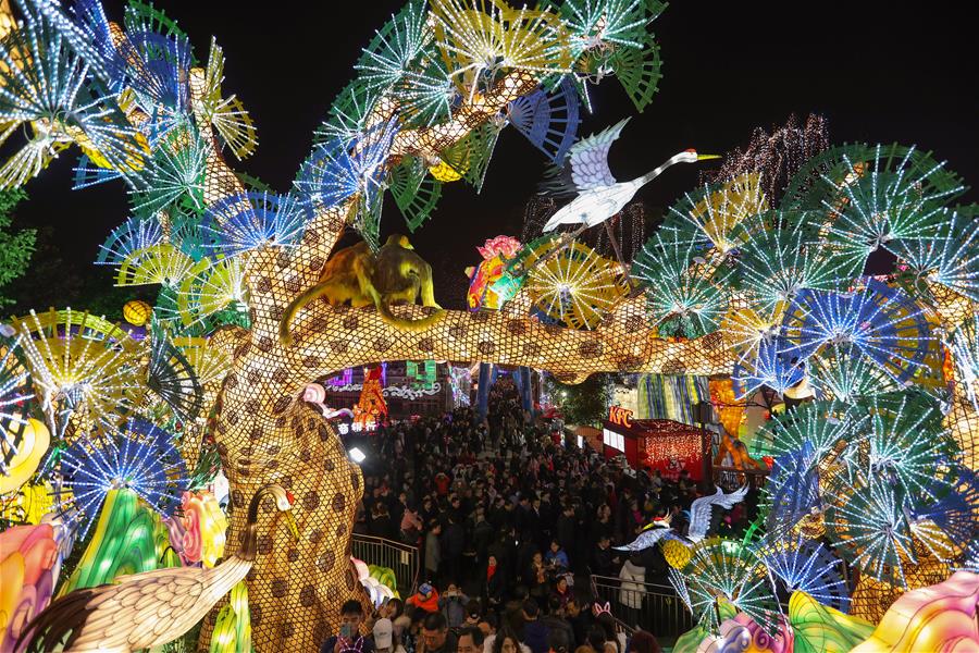 SICHUAN, enero 22, 2019 (Xinhua) -- Imagen del 21 de enero de 2019 de personas observando cuentas de iluminación durante un festival de linternas en Zigong, en la provincia de Sichuan, en el suroeste de China. (Xinhua/Jiang Hongjing)