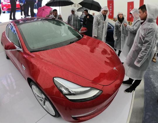 Un coche eléctrico Tesla, modelo 3, se muestra en la ceremonia de inicio de la construcción de la nueva planta de fabricación de Tesla en Shanghai , 7 de enero del 2019. (Foto: Servicio de Noticias de China)