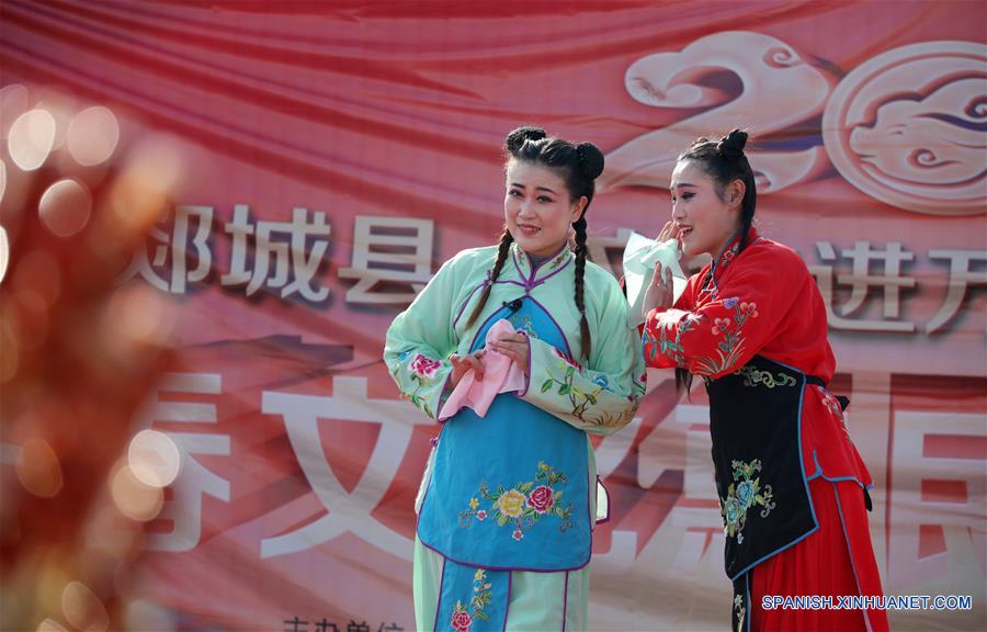 SHANDONG, enero 23, 2019 (Xinhua) -- Artistas realizan una presentación en el municipio de Honghua del condado de Tancheng, provincia de Shandong, en el este de China, el 23 de enero de 2019. Quince equipos voluntarios visitan las villas en el condado de Tancheng, llevando espectáculos y pergaminos del Festival de Primavera para dar la bienvenida al A?o Nuevo Lunar. (Xinhua/Zhang Chunlei)