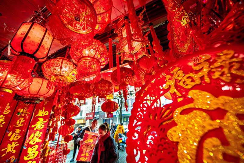 Decoraciones alegóricas al Festival de la Primavera en una tienda de Lishui, provincia de Zhejiang, 25 de enero del 2019. El Festival de la Primavera, o a?o nuevo chino, se celebrará el próximo 5 de febrero. [Foto: Xinhua]