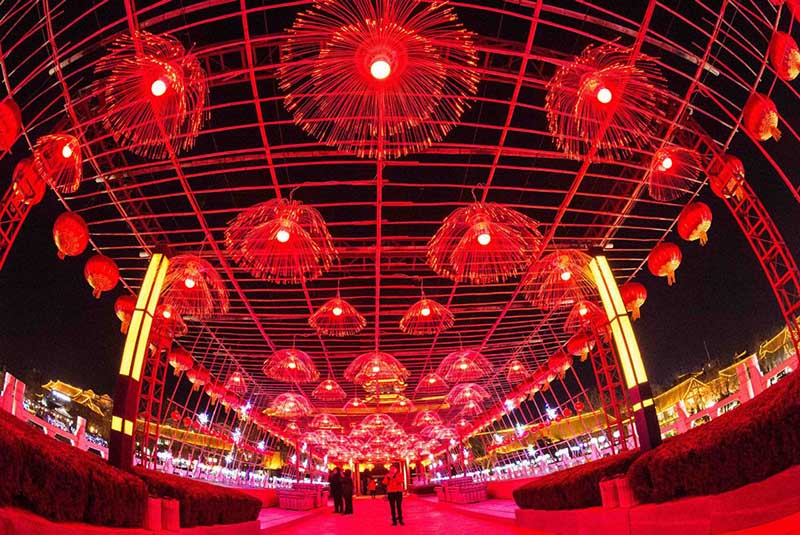 Decoraciones alegóricas al Festival de la Primavera en un parque de Qingzhou, provincia de Shandong, 25 de enero del 2019. El Festival de la Primavera, o a?o nuevo chino, se celebrará el próximo 5 de febrero. [Foto: Xinhua]