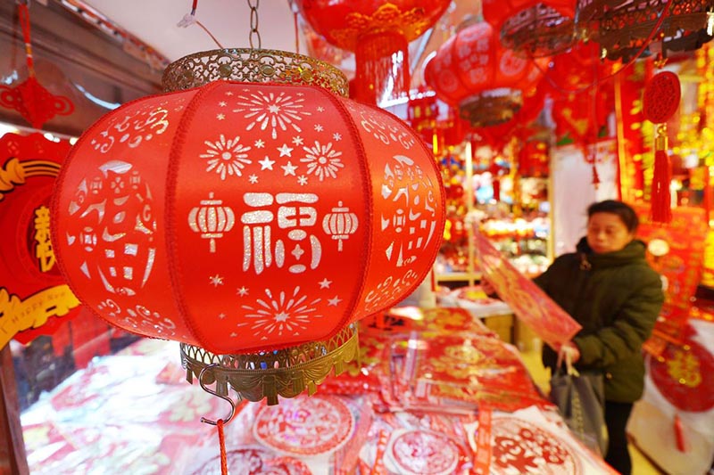 Decoraciones alegóricas al Festival de la Primavera en un mercado de Qingdao, provincia de Shandong, 26 de enero del 2019. El Festival de la Primavera, o a?o nuevo chino, se celebrará el próximo 5 de febrero. [Foto: Xinhua]