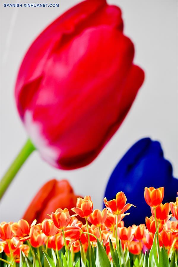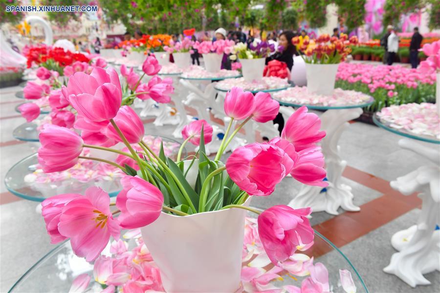 GUANGDONG, enero 28, 2019 (Xinhua) -- Imagen del 22 de enero de 2019 de tulipanes exhibidos en un jardín en la zona de libre comercio de Nansha, en la provincia de Guangdong, en el sur de China. Más de 30 variedades de tulipanes traídos del Jardín Keukenhof de Países Bajos fueron exhibidos recientemente. (Xinhua/Liu Dawei)