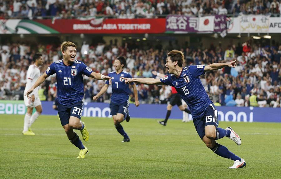 AL AIN, enero 28, 2019 (Xinhua) -- El jugador Yuya Osako (d), de Japón, festeja su anotación durante el partido correspondiente a la semifinal de la Copa Asiática 2019 de la Confederación Asiática de Fútbol (AFC, por sus siglas en inglés), ante Irán, celebrado en el Estadio Hazza Bin Zayed, en Al Ain, Emiratos Arabes Unidos (EAU), el 28 de enero de 2019. (Xinhua/Ding Xu)