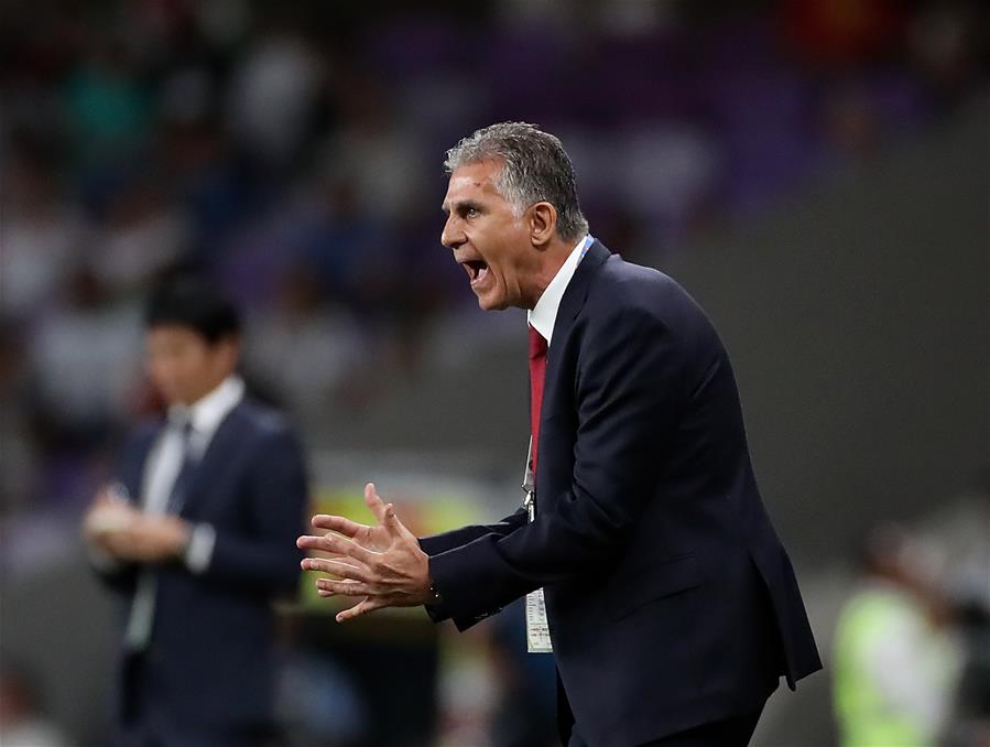 AL AIN, enero 28, 2019 (Xinhua) -- El director técnico, Carlos QueiroZ, de Irán, reacciona durante el partido correspondiente a la semifinal de la Copa Asiática 2019 de la Confederación Asiática de Fútbol (AFC, por sus siglas en inglés), ante Japón, celebrado en el Estadio Hazza Bin Zayed, en Al Ain, Emiratos Arabes Unidos (EAU), el 28 de enero de 2019. (Xinhua/Cao Can)