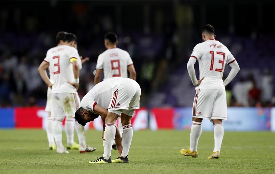 AL AIN, enero 28, 2019 (Xinhua) -- Jugadores de Irán, reaccionan al término del partido correspondiente a la semifinal de la Copa Asiática 2019 de la Confederación Asiática de Fútbol (AFC, por sus siglas en inglés), ante Japón, celebrado en el Estadio Hazza Bin Zayed, en Al Ain, Emiratos Arabes Unidos (EAU), el 28 de enero de 2019. (Xinhua/Ding Xu)
