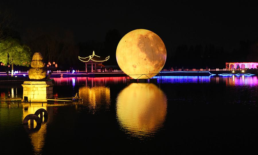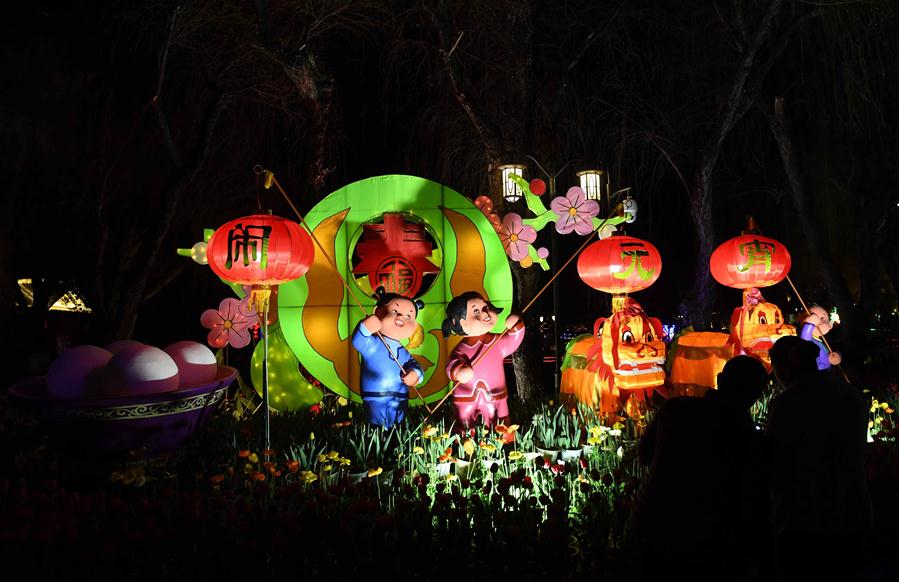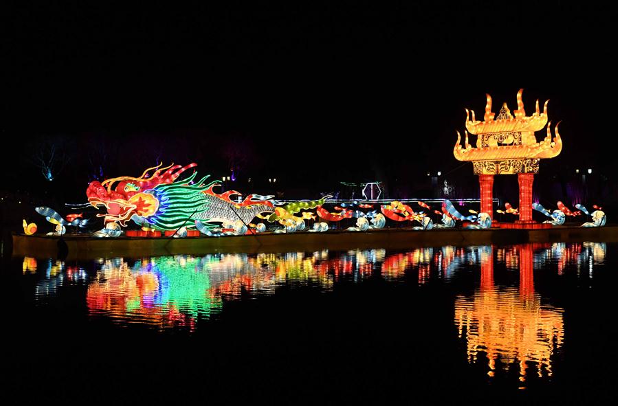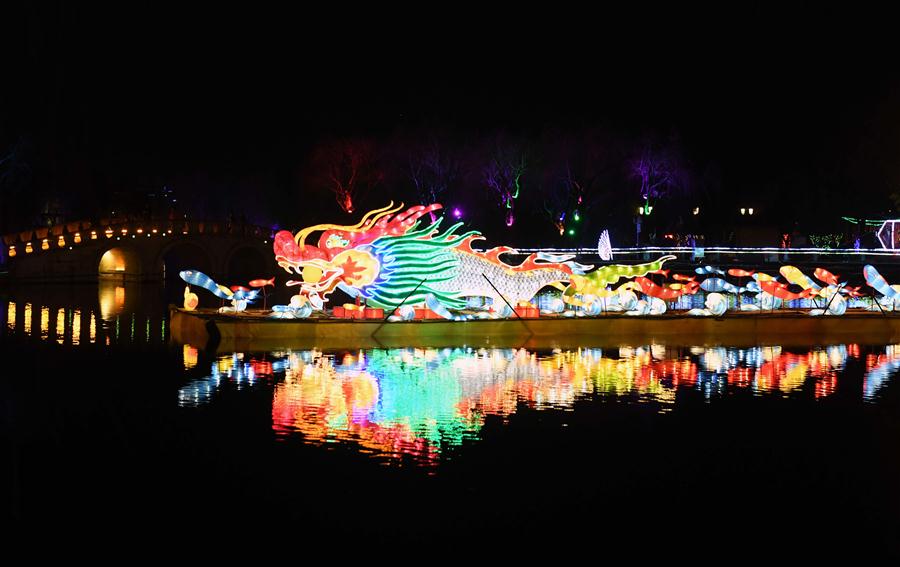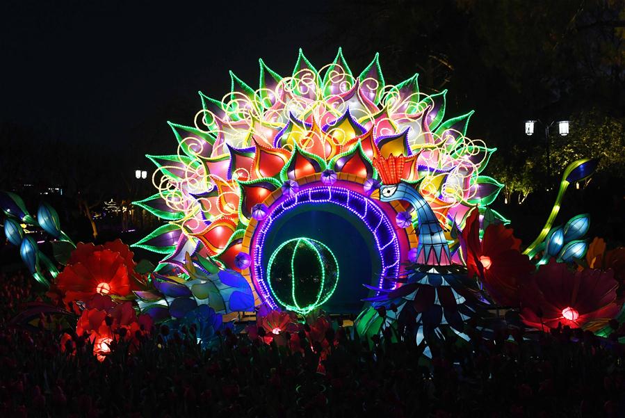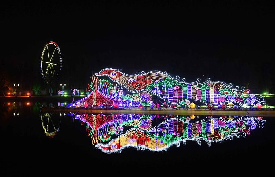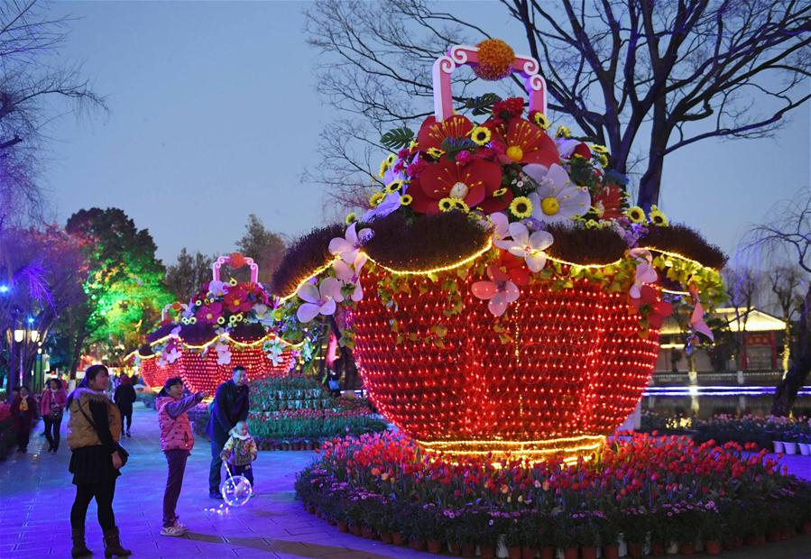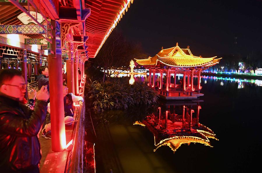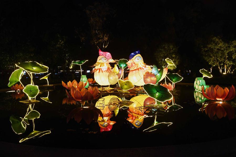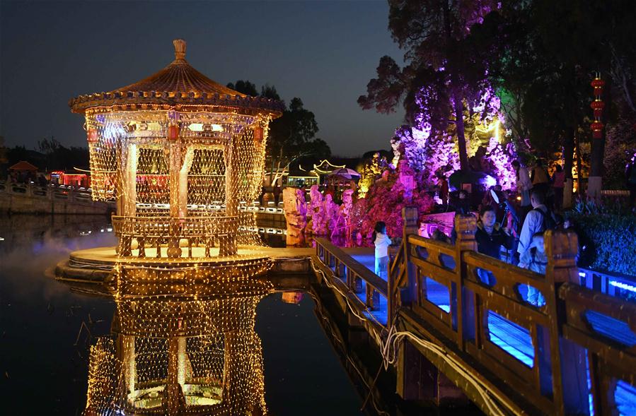 YUNNAN, enero 29, 2019 (Xinhua) -- Imagen del 28 de enero de 2019 de una vista de una instalación de linternas de fantasía en el Parque Daguan, en Kunming, capital de la provincia de Yunnan, en el suroeste de China. Un espectáculo de linternas de dos meses de duración comenzó el 25 de enero en Kunming. (Xinhua/Yang Zongyou)