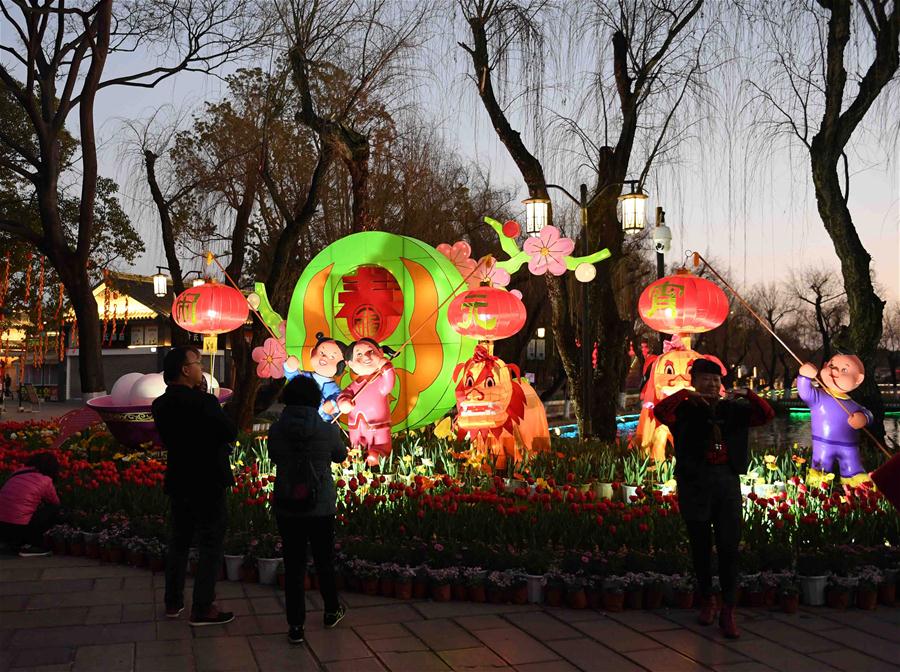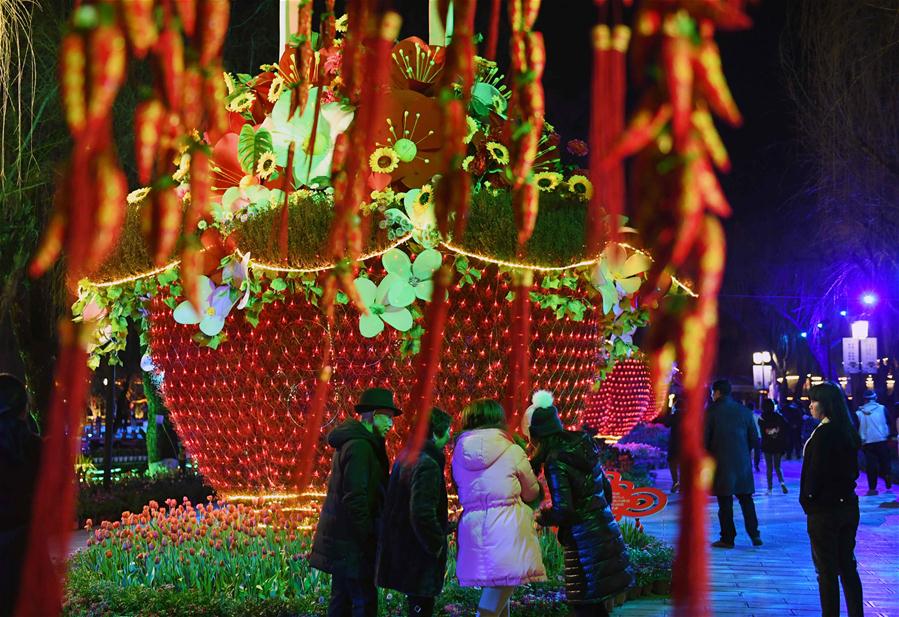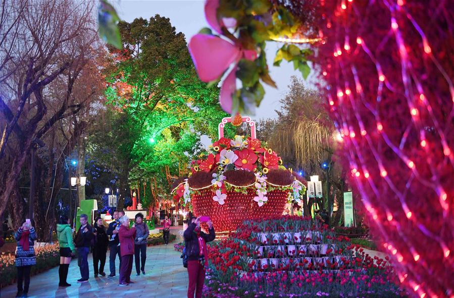YUNNAN, enero 29, 2019 (Xinhua) -- Imagen del 28 de enero de 2019 de turistas observando las linternas de fantasía en el Parque Daguan, en Kunming, capital de la provincia de Yunnan, en el suroeste de China. Un espectáculo de linternas de dos meses de duración comenzó el 25 de enero en Kunming. (Xinhua/Yang Zongyou)