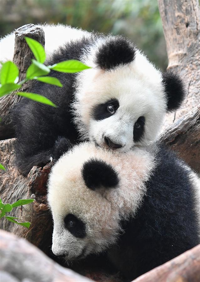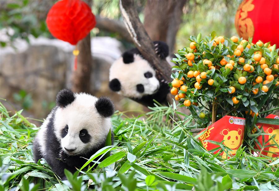 GUANGDONG, enero 29, 2019 (Xinhua) -- Los cachorros de panda gigante Long Zai y Ting Zai juegan en el Parque Safari Chimelong, en Guangzhou, capital de la provincia de Guangdong, en el sur de China, el 29 de enero de 2019. Los dos cachorros, nacidos en julio de 2018, disfrutaron de un regalo especial de A?o Nuevo en el parque previo al Festival de Primavera, que se celebra el 5 de febrero este a?o. (Xinhua/Liu Dawei)
