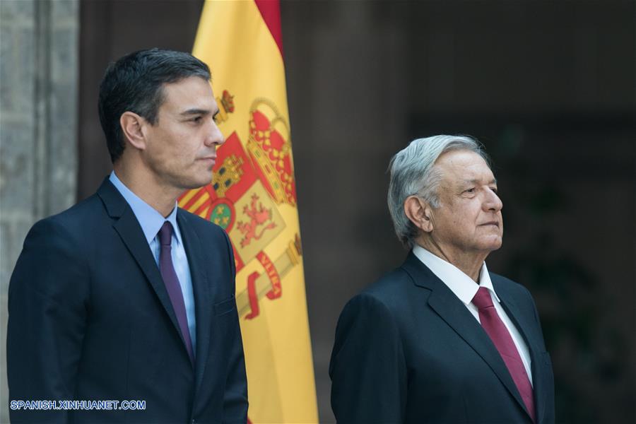 CIUDAD DE MEXICO, enero 30, 2019 (Xinhua) -- El presidente de México, Andrés Manuel López Obrador (d), y el presidente del Gobierno espa?ol, Pedro Sánchez Pérez-Castejón, posan durante una reunión en Palacio Nacional, en la Ciudad de México, capital de México, el 30 de enero de 2019. De acuerdo con información de la prensa local, la visita del presidente del Gobierno espa?ol, Pedro Sánchez Pérez-Castejón, es la primera que realiza un mandatario extranjero al país desde que Andrés Manuel López Obrador fue nombrado presidente de México. (Xinhua/Francisco Ca?edo)