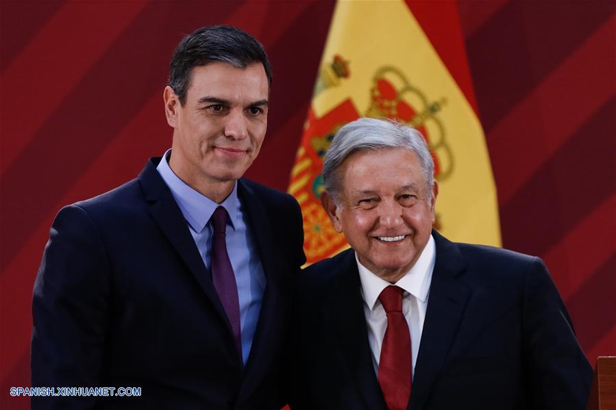 CIUDAD DE MEXICO, enero 30, 2019 (Xinhua) -- El presidente de México, Andrés Manuel López Obrador (d), y el presidente del Gobierno espa?ol, Pedro Sánchez (i), posan durante un mensaje a medios, en Palacio Nacional, en la Ciudad de México, capital de México, el 30 de enero de 2019. De acuerdo con información de la prensa local, la visita del presidente del Gobierno espa?ol, Pedro Sánchez, es la primera que realiza un mandatario extranjero al país desde que Andrés Manuel López Obrador fue nombrado presidente de México. (Xinhua/Francisco Ca?edo)
