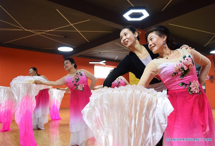 HEBEI, enero 30, 2019 (Xinhua) -- Una instructora de danza (i) y aprendices ensayan en un centro cultural, en el condado de Nanhe, provincia de Hebei, en el norte de China, el 30 de enero de 2019. Más de 2,000 personas han participado en programes de entrenamiento de arte en un centro cultural del condado de Nanhe como una forma de enriquecer sus vidas. (Xinhua/Zhu Xudong)