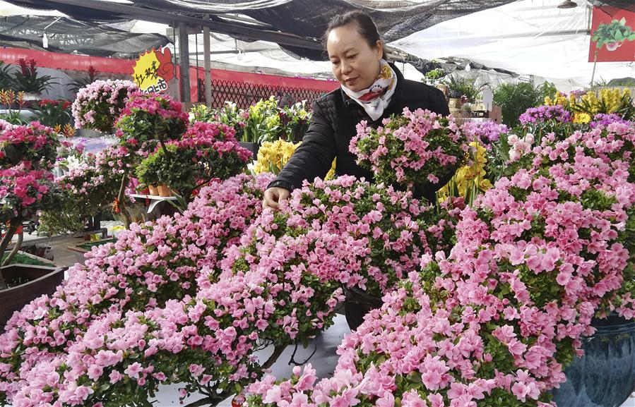 HEBEI, enero 31, 2019 (Xinhua) -- Una clienta selecciona flores en un mercado de flores, en Shijiazhuang, capital de la provincia de Hebei, en el norte de China, el 31 de enero de 2019. Las personas en Shijiazhuang están ocupadas comprando flores para decorar sus hogares como una forma de dar la bienvenida al próximo Festival de Primavera, que se celebra el 5 de febrero este a?o. (Xinhua/Wang Baolong)