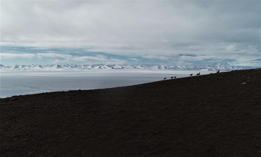 LHASA, enero 31, 2019 (Xinhua) -- Imagen del 17 de enero de 2019 de gacelas descansando cerca del congelado Lago Namsto, en la Región Autónoma del Tíbet, en el suroeste de China. En el pasado, los pastores en el Tíbet soportaron un largo y frío invierno de octubre a finales de junio, antes de trasladarse a la pradera de verano. No tenían residencia fija y migraron cuando las estaciones cambiaron, llevando sus tiendas de campa?a, utensilios de cocina y otros artículos de primera necesidad a caballo. Hoy en día, la mayoría de los pastores se benefician del programa de reasentamiento. Ellos se despidieron de sus chozas de invierno y se mudaron a casas de estilo tibetano de ladrillo y mortero. (Xinhua/Purbu Zhaxi)