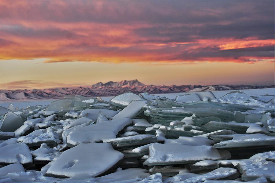 LHASA, enero 31, 2019 (Xinhua) -- Imagen del 18 de enero de 2019 de una vista del congelado Lago Namsto, en la Región Autónoma del Tíbet, en el suroeste de China. En el pasado, los pastores en el Tíbet soportaron un largo y frío invierno de octubre a finales de junio, antes de trasladarse a la pradera de verano. No tenían residencia fija y migraron cuando las estaciones cambiaron, llevando sus tiendas de campa?a, utensilios de cocina y otros artículos de primera necesidad a caballo. Hoy en día, la mayoría de los pastores se benefician del programa de reasentamiento. Ellos se despidieron de sus chozas de invierno y se mudaron a casas de estilo tibetano de ladrillo y mortero. (Xinhua/Purbu Zhaxi)