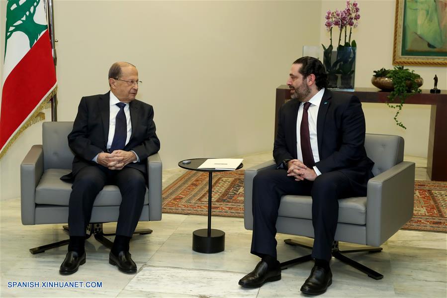 BEIRUT, enero 31, 2019 (Xinhua) -- El presidente de Líbano, Michel Aoun (i), se reúne con el primer ministro libanés, Saad Hariri (d), en Beirut, Líbano, el 31 de enero de 2019. Líbano anunció el jueves la formación de un nuevo gobierno, que es encabezado por el primer ministro Saad Hariri, rompiendo un estancamiento político de casi nueve meses en el país, de acuerdo con el canal de televisión libanés LBCI. (Xinhua/Bilal Jawich)