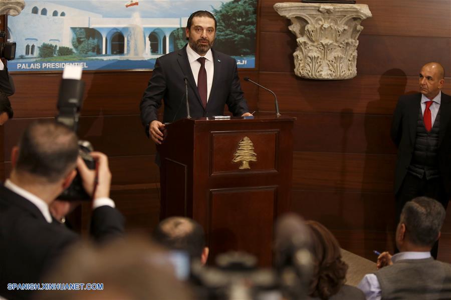 BEIRUT, enero 31, 2019 (Xinhua) -- El primer ministro de Líbano, Saad Hariri (c), participa en una conferencia de prensa, en Beirut, Líbano, el 31 de enero de 2019. Líbano anunció el jueves la formación de un nuevo gobierno, que es encabezado por el primer ministro Saad Hariri, rompiendo un estancamiento político de casi nueve meses en el país, de acuerdo con el canal de televisión libanés LBCI. (Xinhua/Bilal Jawich)