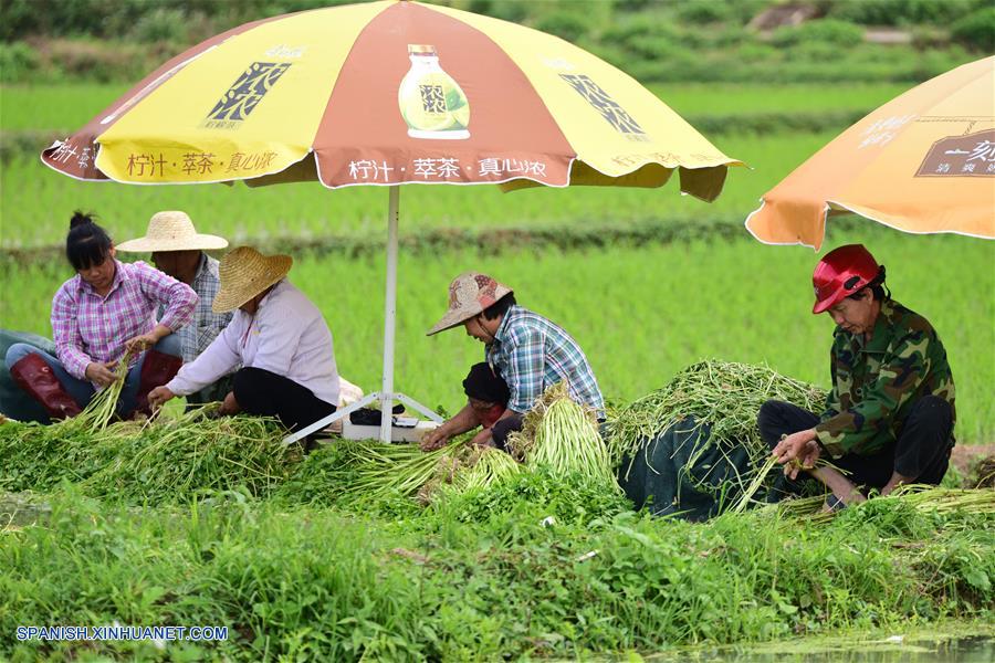 HAINAN, febrero 1, 2019 (Xinhua) -- Agricultoras cosechan apio en la villa de Qiaotou del municipio de Jiaji en la ciudad de Qionghai, provincia de Hainan, en el sur de China, el 1 de febrero de 2019. Los agricultores de la villa de Qiaotou están ocupados cosechando apio para satisfacer la demanda de los clientes mientras el Festival de Primavera se aproxima. El Festival de Primavera, o el A?o Nuevo Lunar chino, cae el 5 de febrero este a?o. (Xinhua/Meng Zhongde)