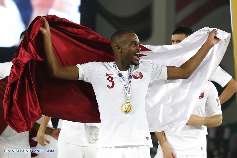 ABU DHABI, febrero 1, 2019 (Xinhua) -- El jugador Abdelkarim Hassan, de Qatar, festeja al término del partido de la final de la Copa Asiática 2019 de la Confederación Asiática de Fútbol (AFC, por sus siglas en inglés), ante Japón, en Abu Dhabi, Emiratos Arabes Unidos (EAU), el 1 de febrero de 2019. (Xinhua/Ding Xu)