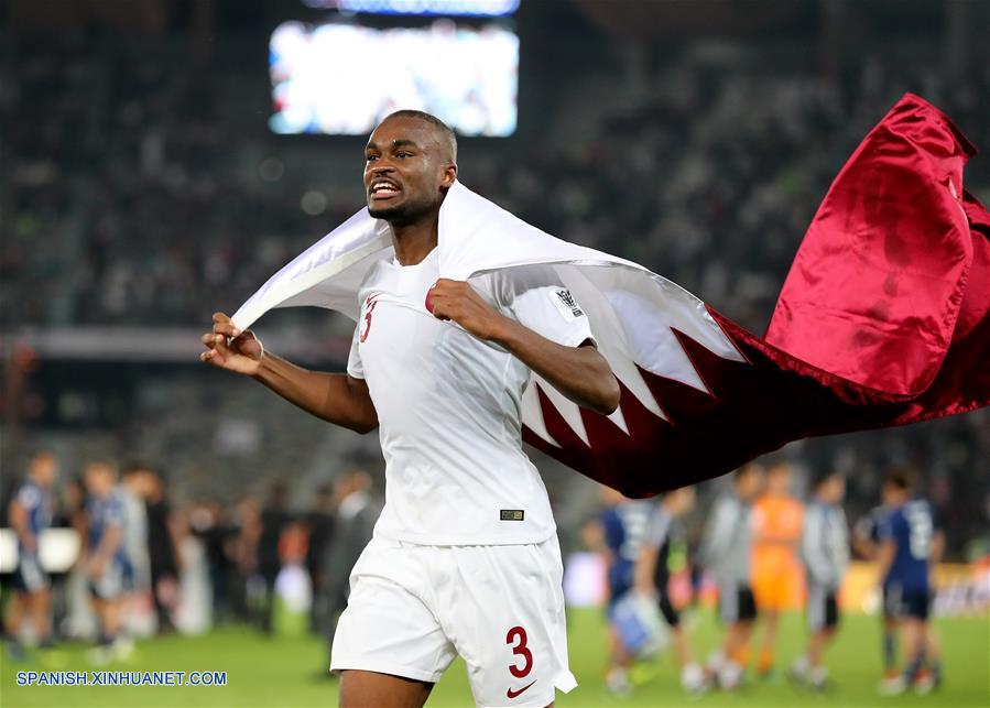 ABU DHABI, febrero 1, 2019 (Xinhua) -- El jugador Abdelkarim Hassan, de Qatar, festeja al término del partido de la final de la Copa Asiática 2019 de la Confederación Asiática de Fútbol (AFC, por sus siglas en inglés), ante Japón, en Abu Dhabi, Emiratos Arabes Unidos (EAU), el 1 de febrero de 2019. (Xinhua/Cao Can)