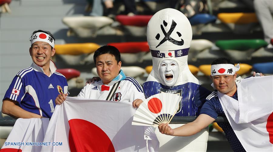 ABU DHABI, febrero 1, 2019 (Xinhua) -- Aficionados de Japón reaccionan previo al partido de la final de la Copa Asiática 2019 de la Confederación Asiática de Fútbol (AFC, por sus siglas en inglés), ante Qatar, en Abu Dhabi, Emiratos Arabes Unidos (EAU), el 1 de febrero de 2019. (Xinhua/Ding Xu)