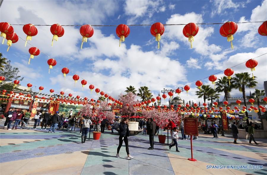 LOS ANGELES, febrero 10, 2019 (Xinhua) -- Imagen del 9 de febrero de 2019, de turistas participando en las actividades en celebración del A?o Nuevo Lunar chino, en Universal Studios Hollywood, en Los Angeles, Estados Unidos. (Xinhua/Li Ying)
